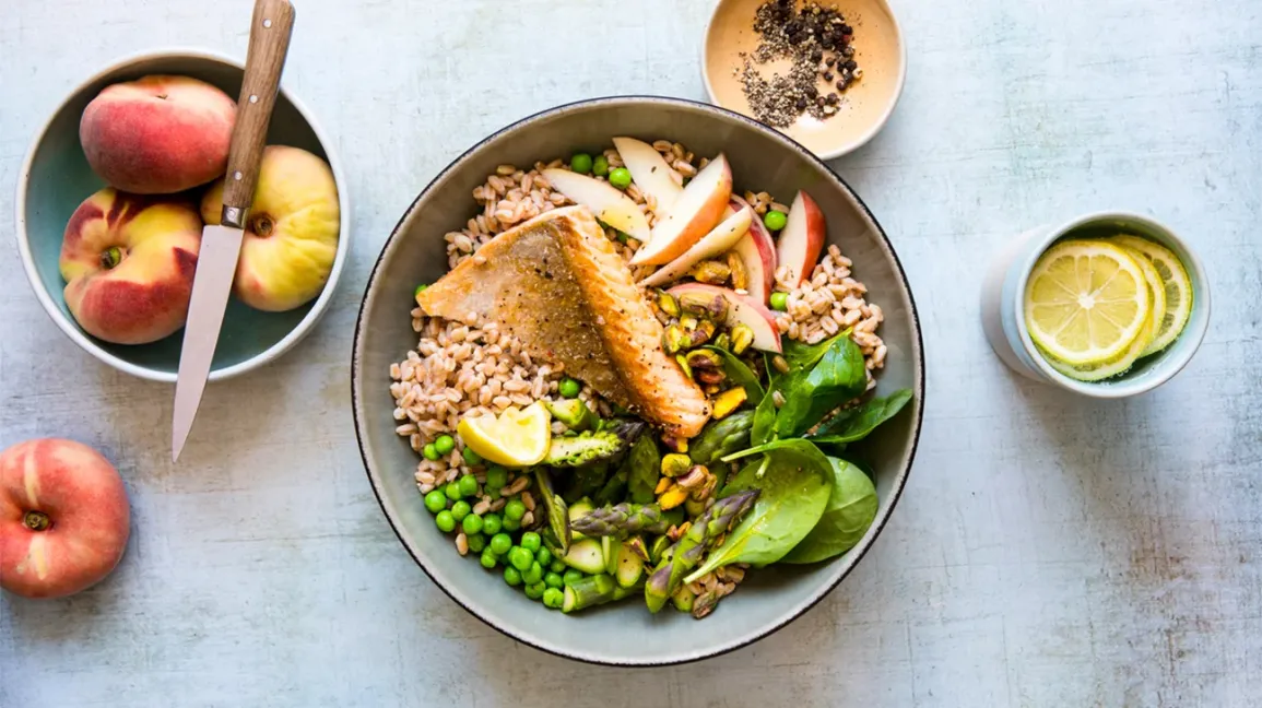 3. Susține metabolismul: Include proteine de calitate, grăsimi sănătoase și carbohidrați cu impact scăzut asupra glicemiei, pentru a evita creșterea în greutate tipică după 50 de ani.
